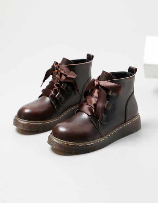 View full detailsComfortable Retro Leather Lace-up Mary Jane Boots