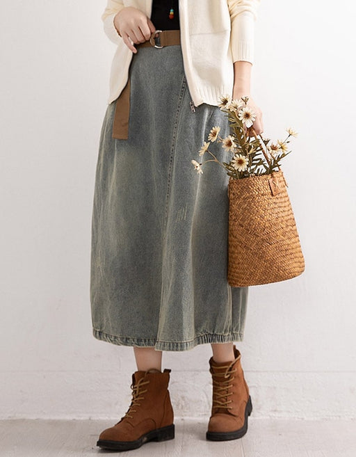 Autumn Retro Denim Mid-length Skirt