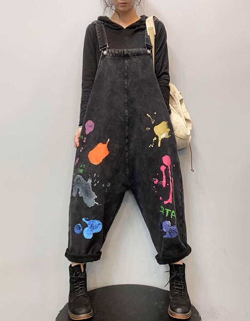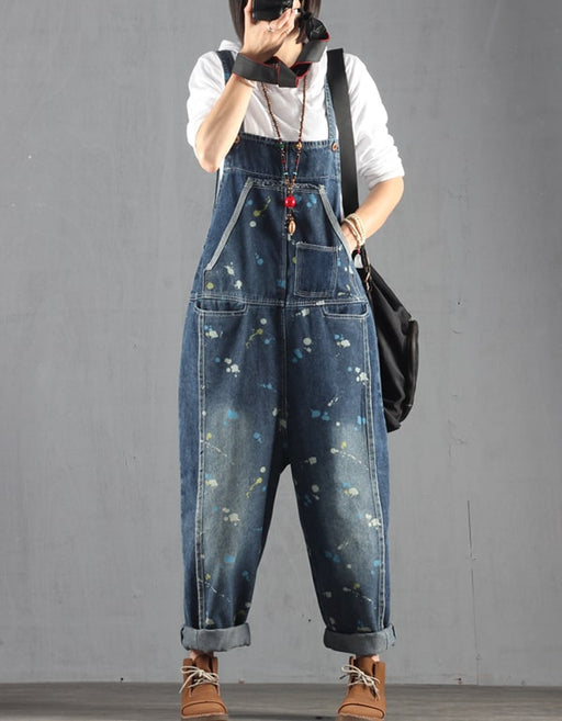 Printed Denim Loose Women Harem Jumpsuit