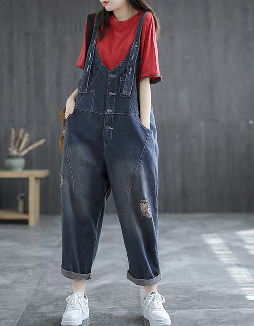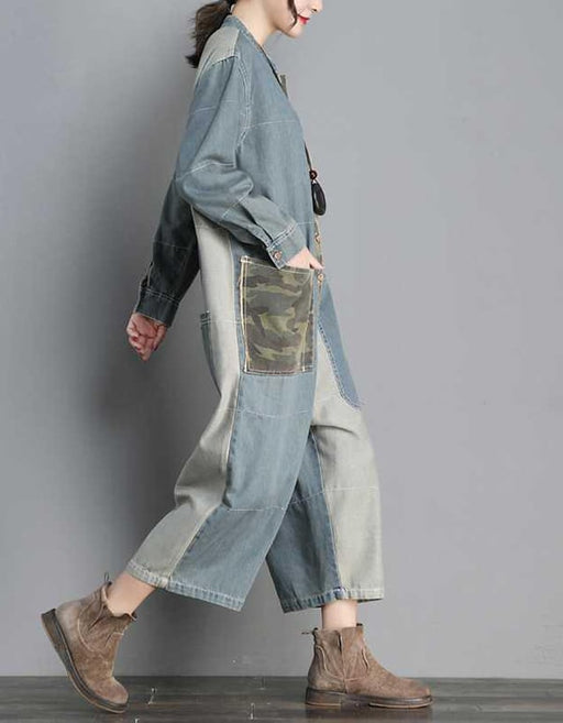NEW Women Loose Denim Retro Jumpsuit