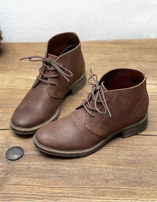 Autumn Pointed Toe Lace-up Retro Leather Boots