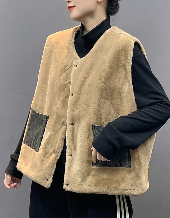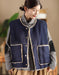 Fur Lining Round Neck Reversible Denim Vest for Winter