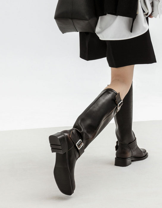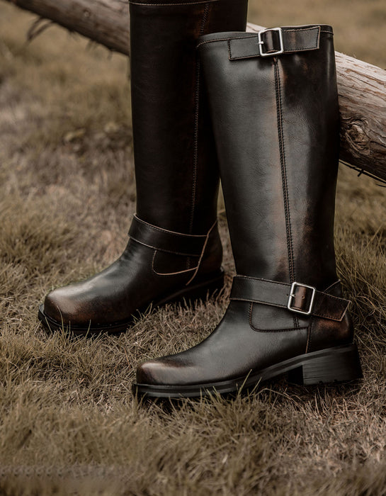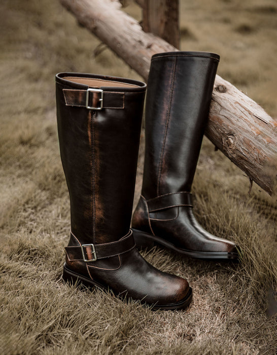 Rich Leather Vintage Handmade Knee High Boots 34-41