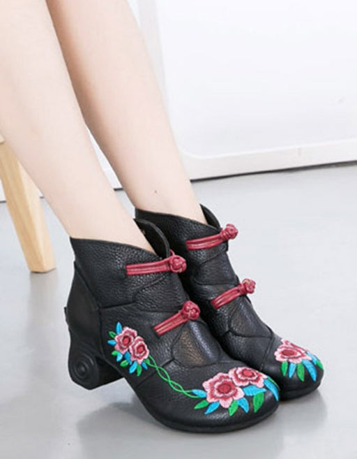 View full detailsWinter Leather Flower Printed Ethnic Style Chunky Heels Boots