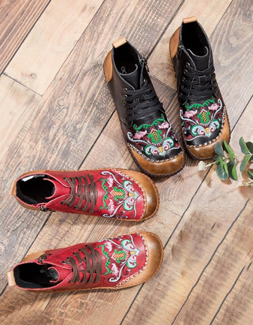 View full detailsEthnic Style Lace-up Flower Printed Leather Boots