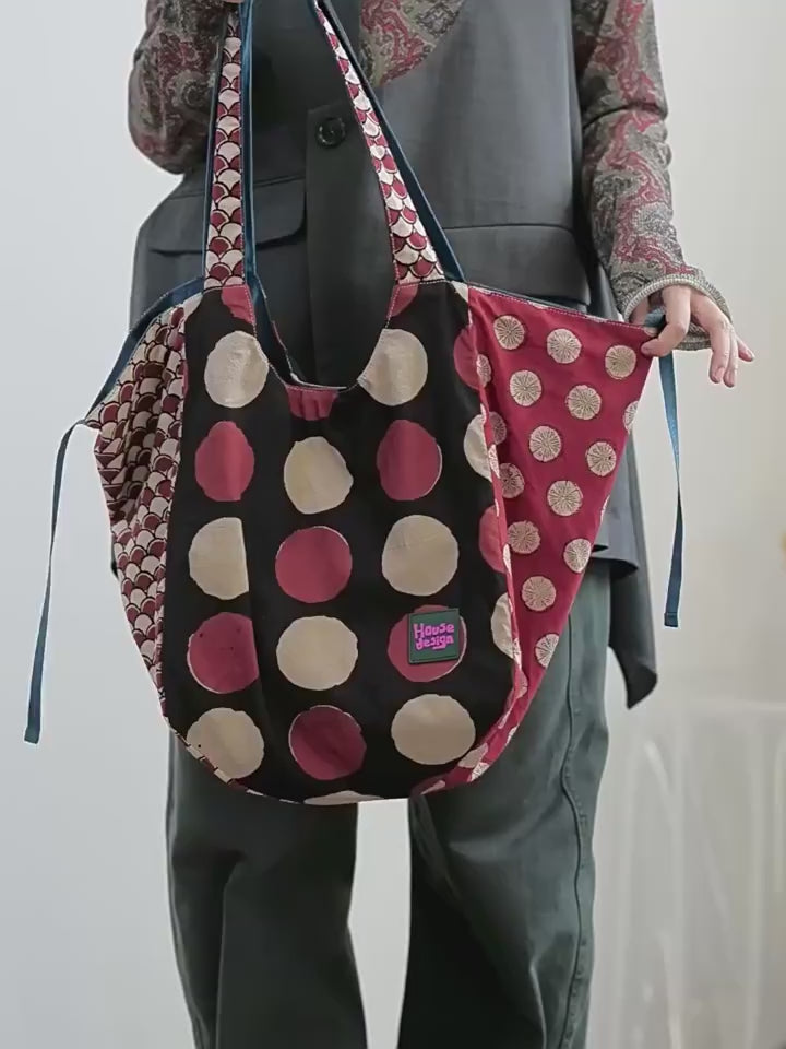 Spring Retro Patchwork Artistic Dots Tote Bag