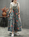Retro Loose Printed Floral Women's Denim Jumpsuit
