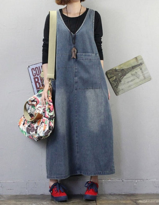 Features: Loose denim dress women Material: 100% Denim Long length Loose retro style No stretch Fit for fall and spring Size M; L; XL; 2XL M:...