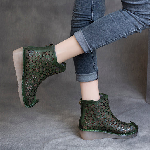 Open Toe Cut-out Retro Leather Women's Wedge Sandals