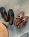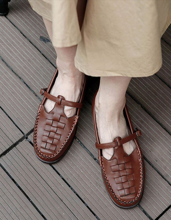 Zapatos Mary Jane de cuero tejido con hebilla y tira en T