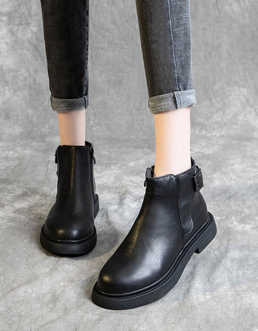 Ver todos los detallesBotas cortas negras de estilo británico de cuero retro