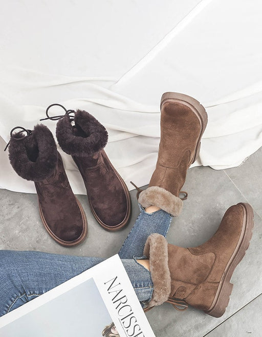 Ver todos los detallesBotas de cuña de piel de felpa estilo retro para mujer
