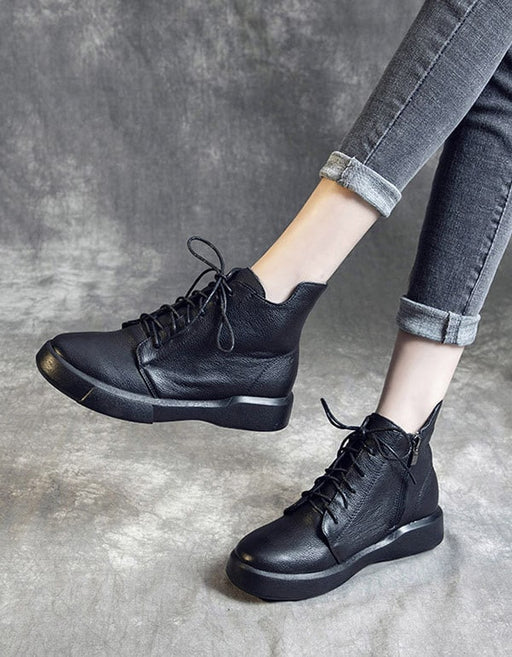 Ver todos los detallesBotas de cuero retro hechas a mano, versátiles y con cordones