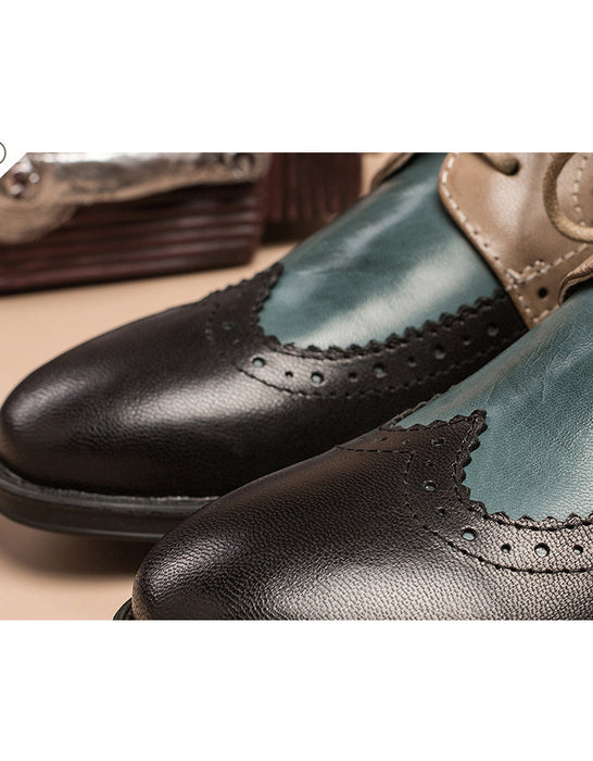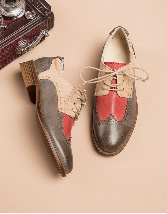 Zapatos Oxford británicos con cordones de tres tonos hechos a mano para mujer talla 35-41