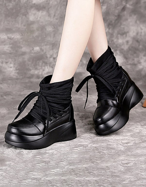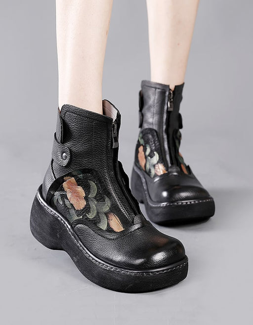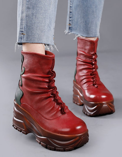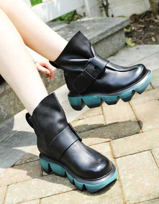 Item Type: Wide Toe Box Boots Gender: Female Main Material: Cowhide Outsole: Rubber Heel Type: Platform Heel Height: Mid(6 cm) Season: Summer/ Sp...