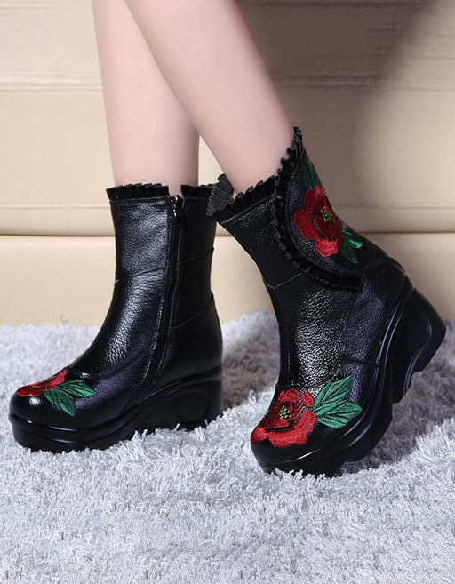 Ver todos los detallesBotas de cuña con bordado retro hechas a mano