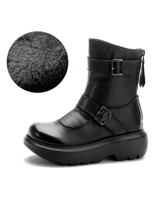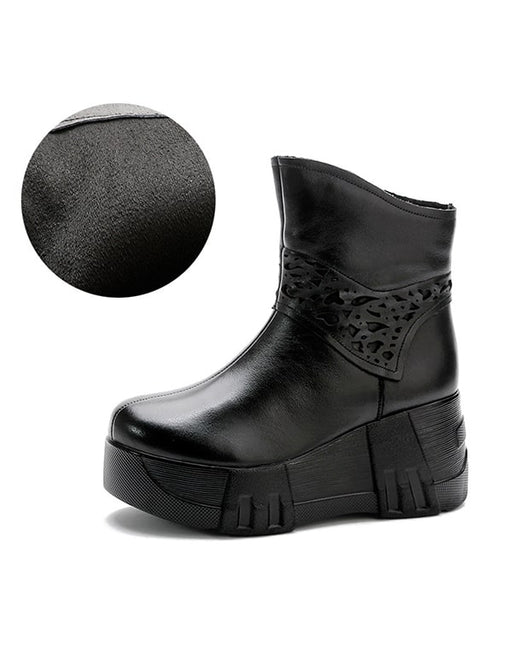 Ver todos los detallesBotas de cuña interior de piel de invierno estilo retro | Zapatos de regalo