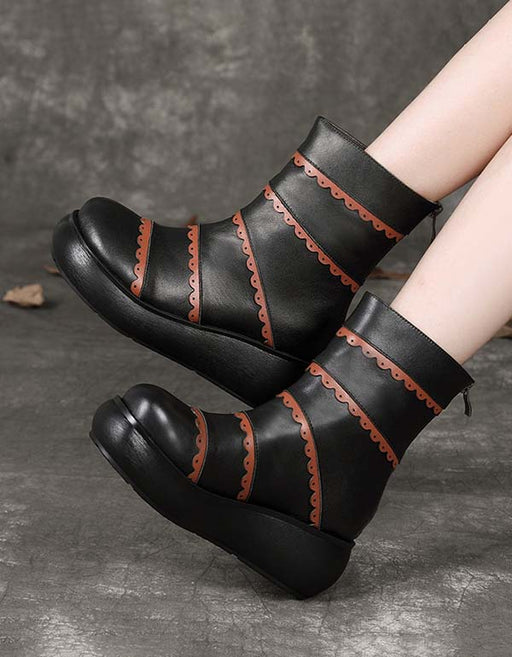 Ver todos los detallesBotas retro de cuña de cuero para mujer para otoño e invierno