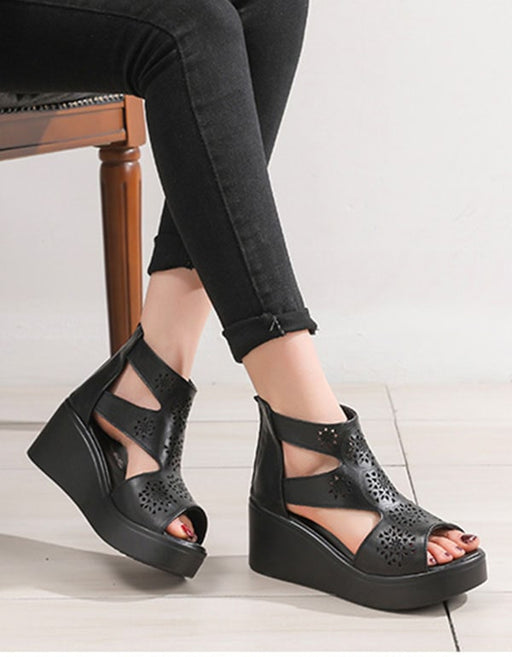 Ver todos los detallesSandalias de cuña con corte retro hechas a mano para mujer