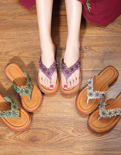 Ver todos los detallesPantuflas retro cómodas con flores de cuero hechas a mano