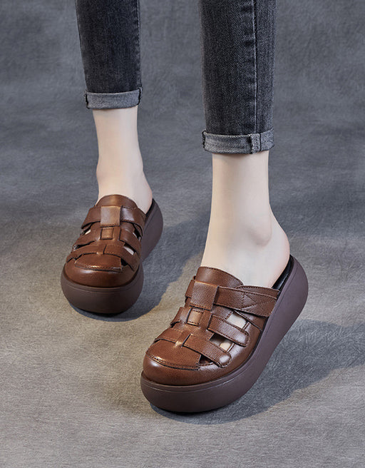 Ver todos los detallesSandalias retro hechas a mano de cuero hueco con tira trasera