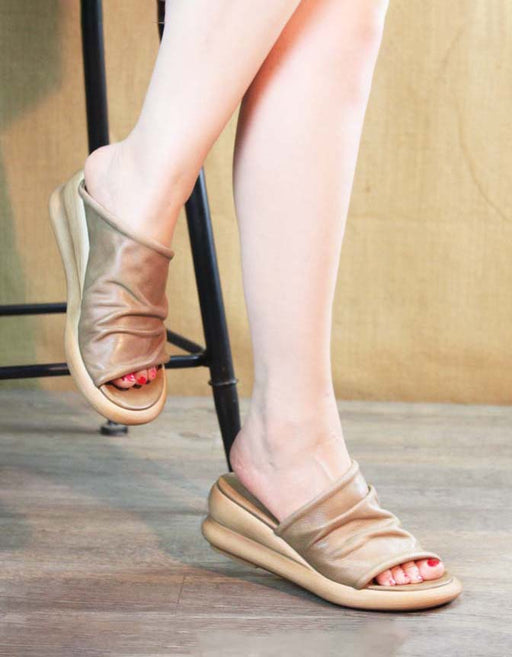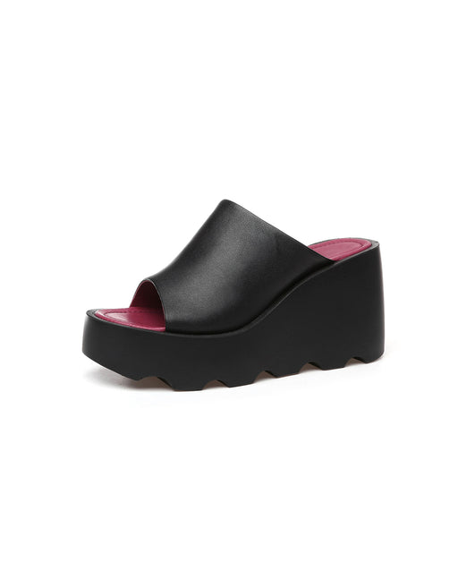 Pantuflas de cuña con punta abierta y costuras de cuero suave