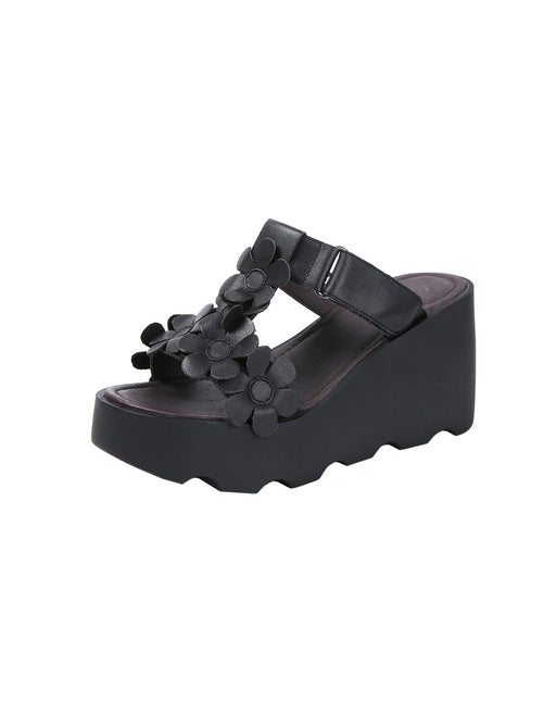 Ver todos los detallesZapatillas de cuña estilo oriental con flores de cuero retro