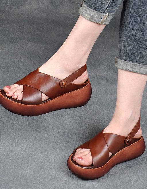 Ver todos los detallesSandalias de playa con plataforma de cuero retro de verano