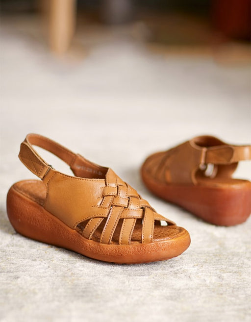 Ver todos los detallesSandalias de cuña estilo chanclas de cuero estilo retro para mujer