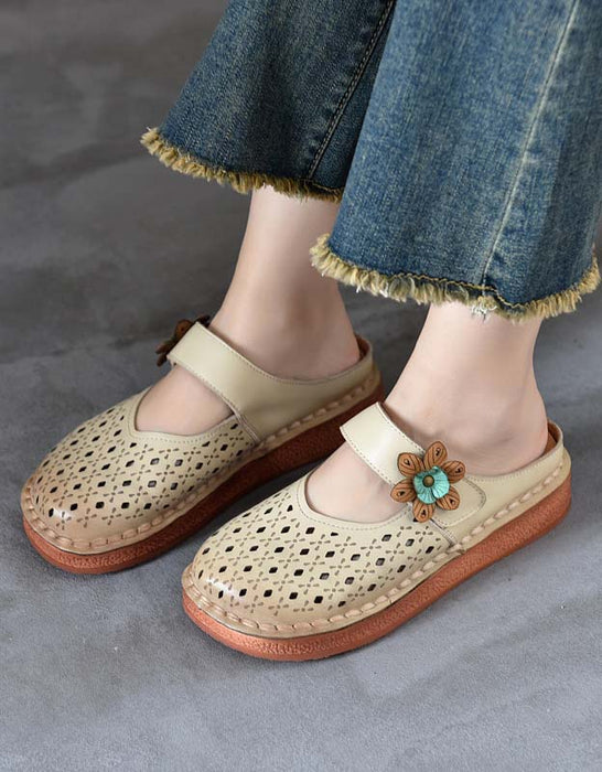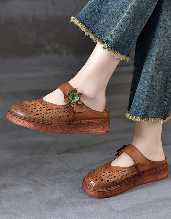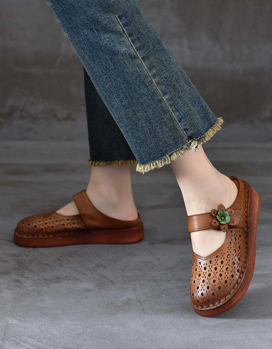 Zapatillas de verano huecas de cuero retro hechas a mano