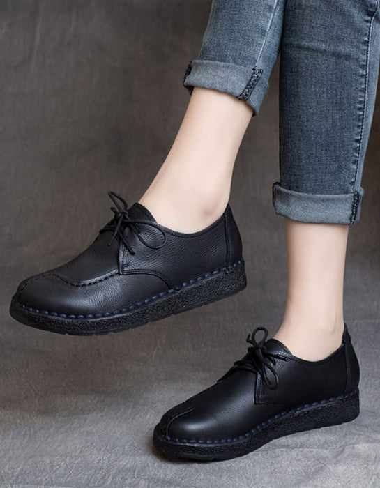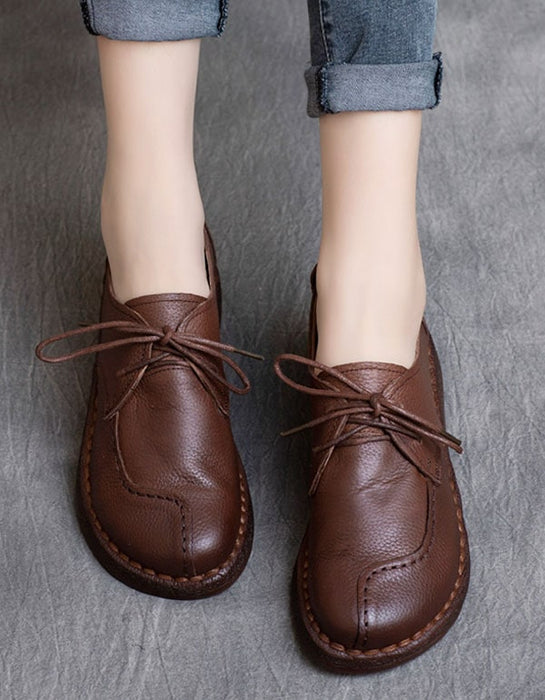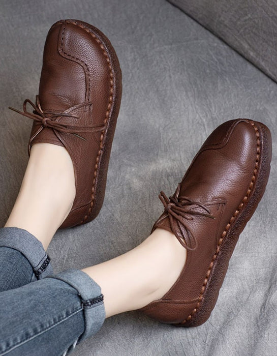 Zapatos planos retro de cuero suave con cordones hechos a mano talla 41-42