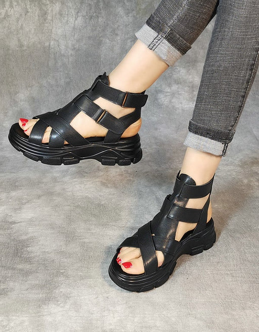 Sandalias de plataforma con punta abierta y diseño de flores de cuero estilo retro