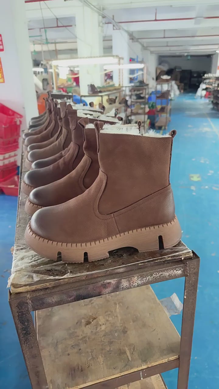 Botas de invierno de piel auténtica, cómodas, con puntera ancha y piel