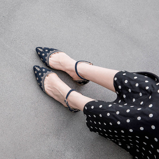 Ver todos los detallesZapatos elegantes con tiras en punta y tacón bajo bordados