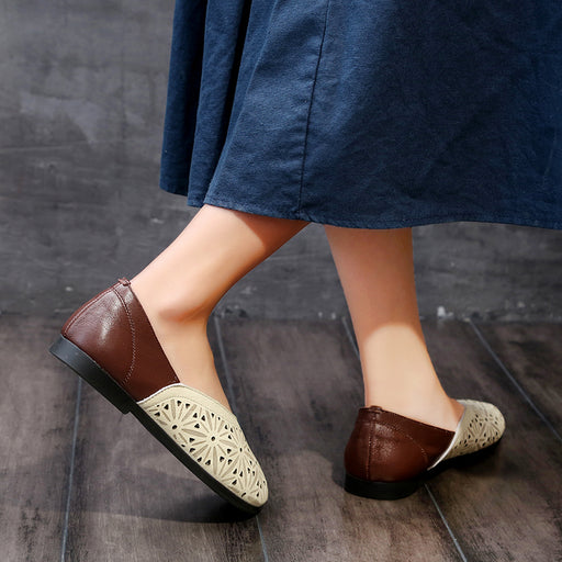 Ver todos los detallesZapatos planos retro para mujer hechos a mano y huecos