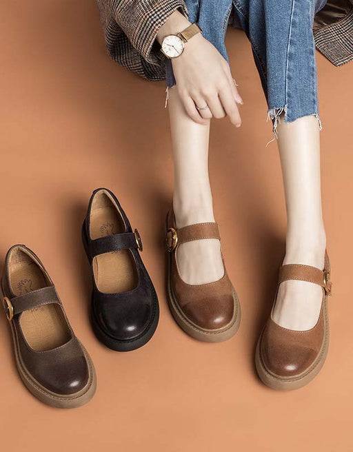 Zapatos Mary Jane hechos a mano con doble hebilla de cuero auténtico