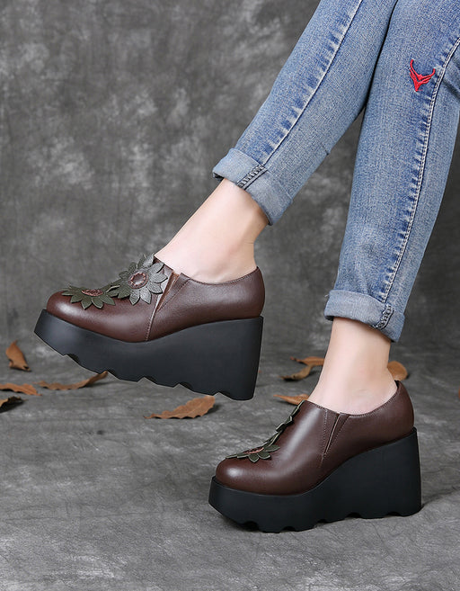 Ver todos los detallesSandalias de plataforma con flores de cuero retro hechas a mano