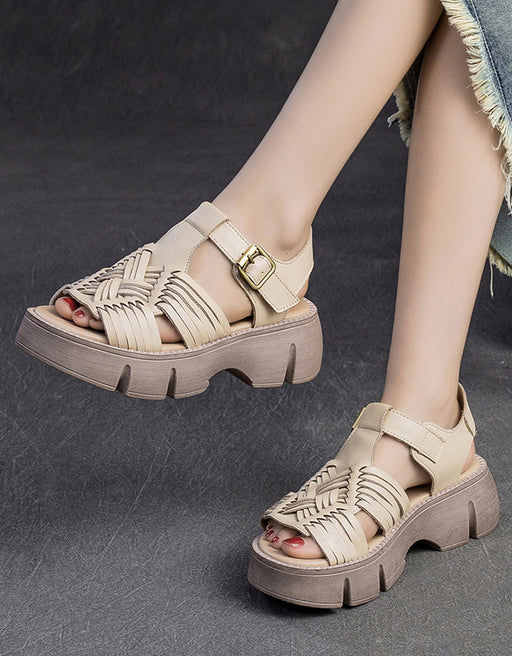 Sandalias de plataforma con tiras de cuero cómodas y punta abierta