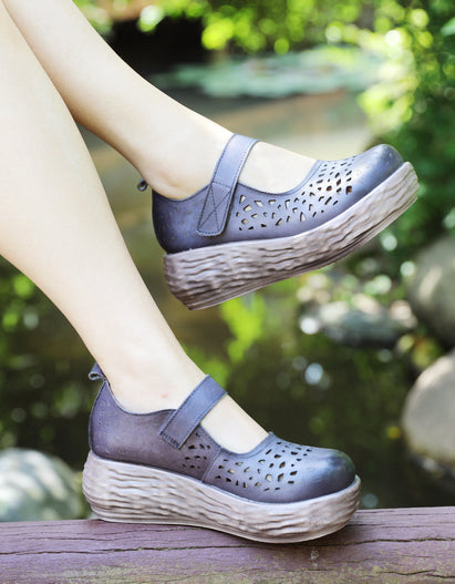 Zapatos de cuña retro hechos a mano, antideslizantes e impermeables