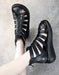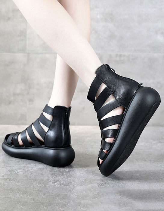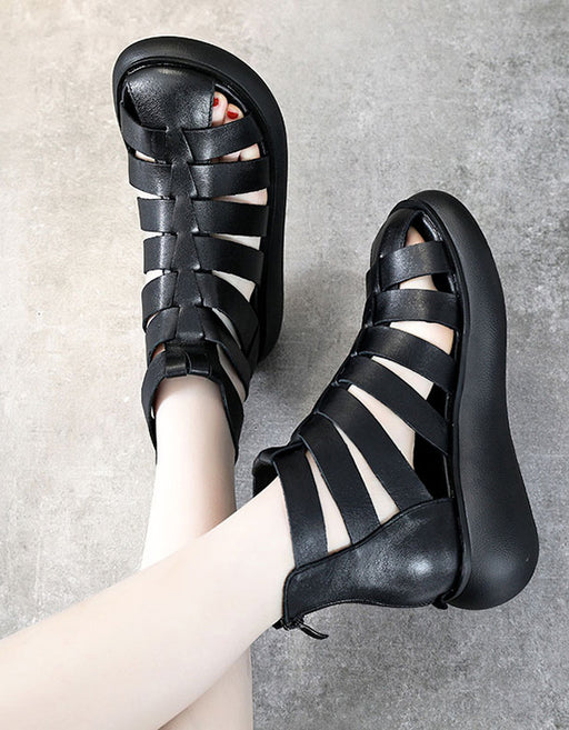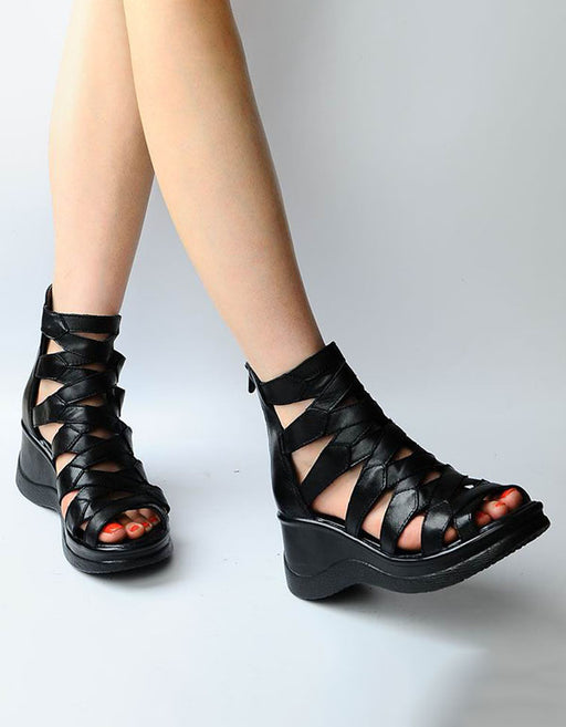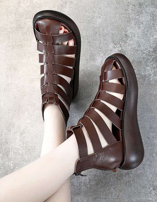 Sandalias de cuña con tiras estilo retro romano para mujer