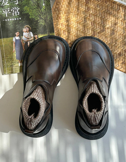 Botas de invierno retro de cuero con puntera ancha