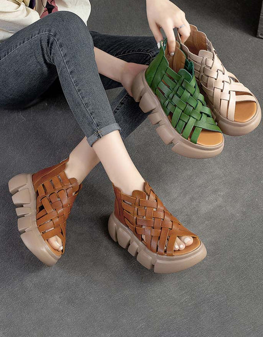 Características: Artículo: Sandalias tejidas retro | Sandalias de plataforma Género: Mujer Material principal: piel de vaca Tipo de tac...
