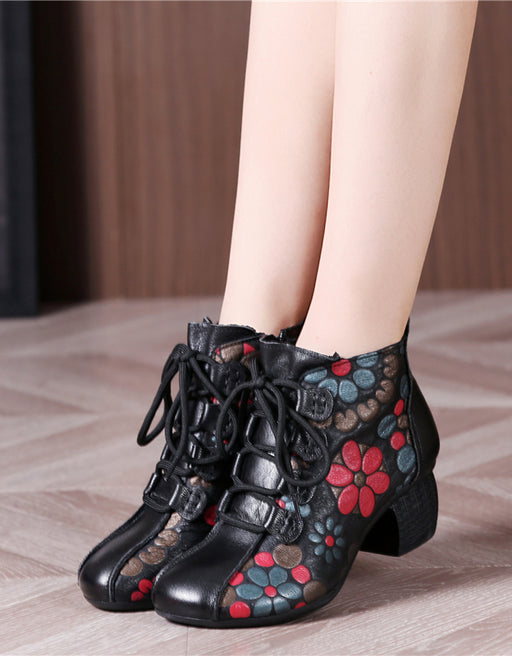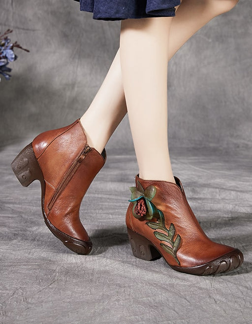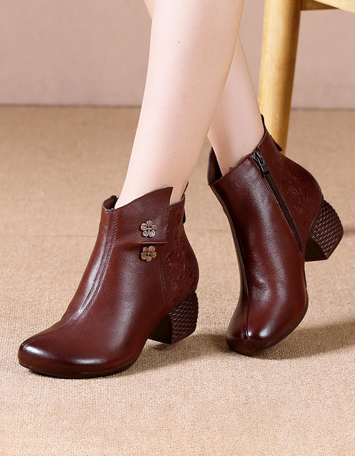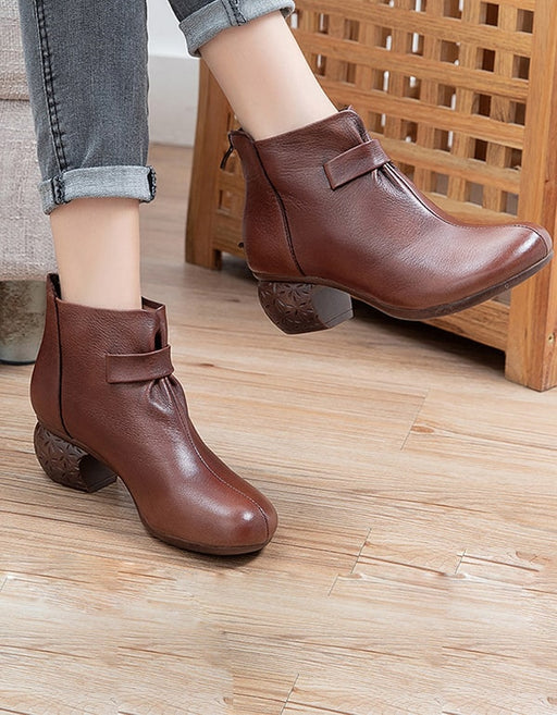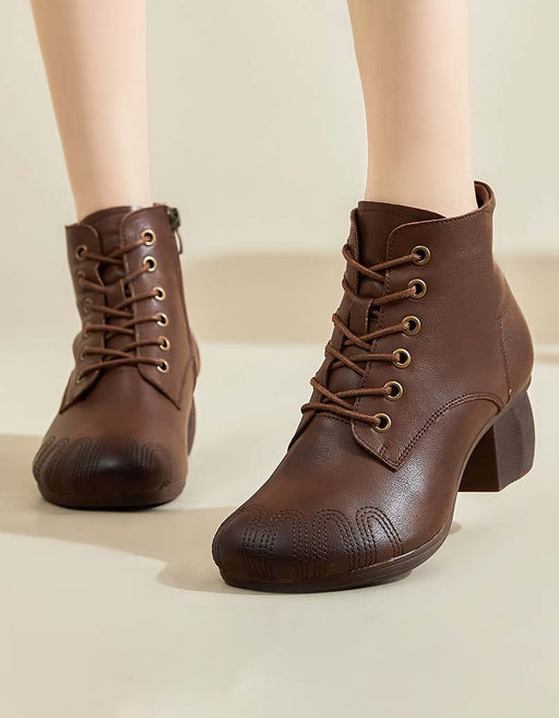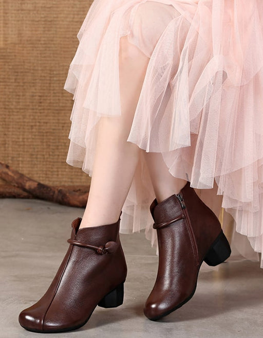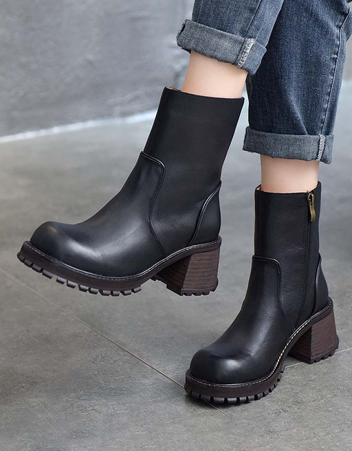 Botas de mujer de piel retro hechas a mano con tacón grueso