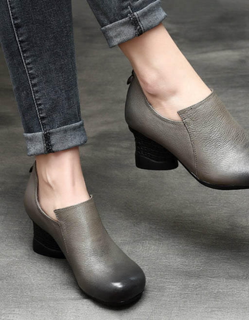 Zapatos de mujer hechos a mano con tacón grueso de piel de primavera