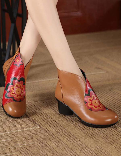 Botas gruesas de cuero con estampado de flores estilo chino 41
