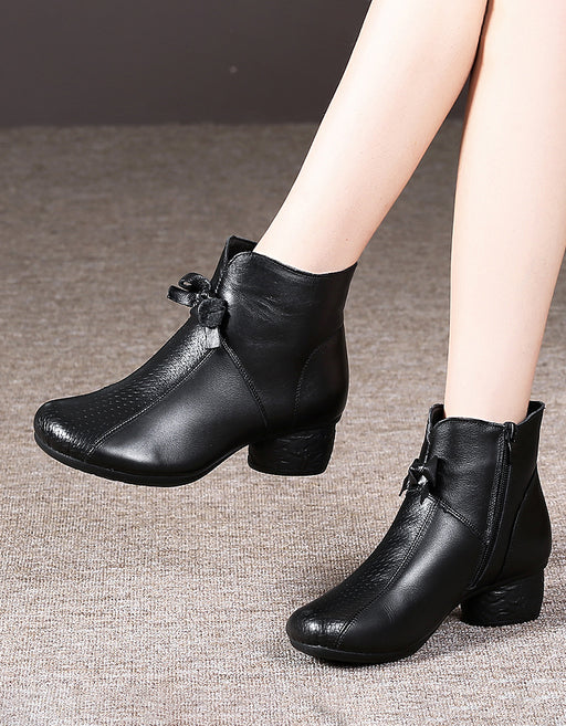 Botas gruesas y cómodas de piel de vaca con punta redonda