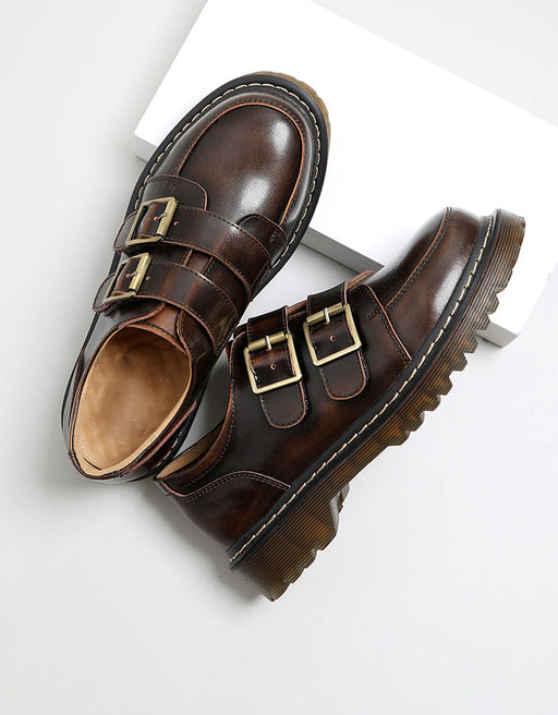 Zapatos para caminar de cuero estilo retro con plataforma Wild Head