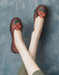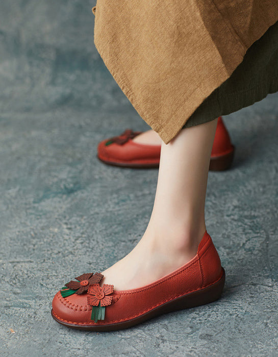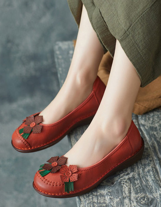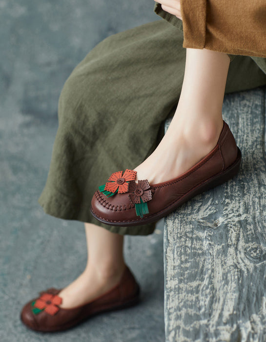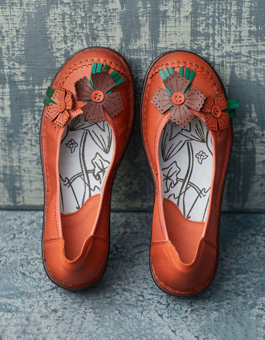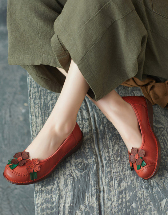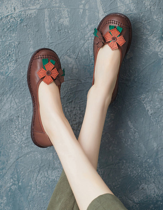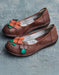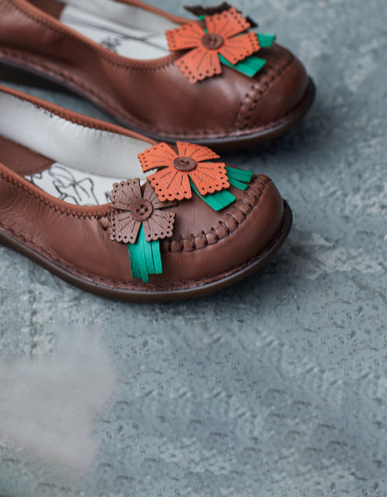 Zapatos planos retro con flores de cuero suave hechos a mano para primavera
