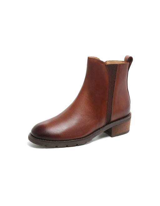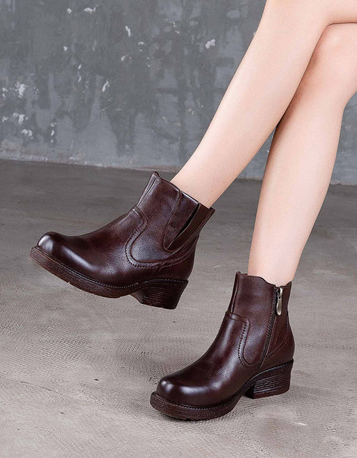 Ver todos los detallesBotas de mujer de piel retro hechas a mano con tacón grueso