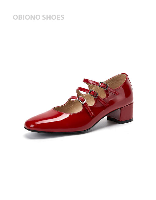 Features: Item Type: Chunky Mary Janes Shoes Brand: Obiono Gender: Women Main Material: Cowhide Heel Type: Chunky Upper Material: Cow Leather Hee...